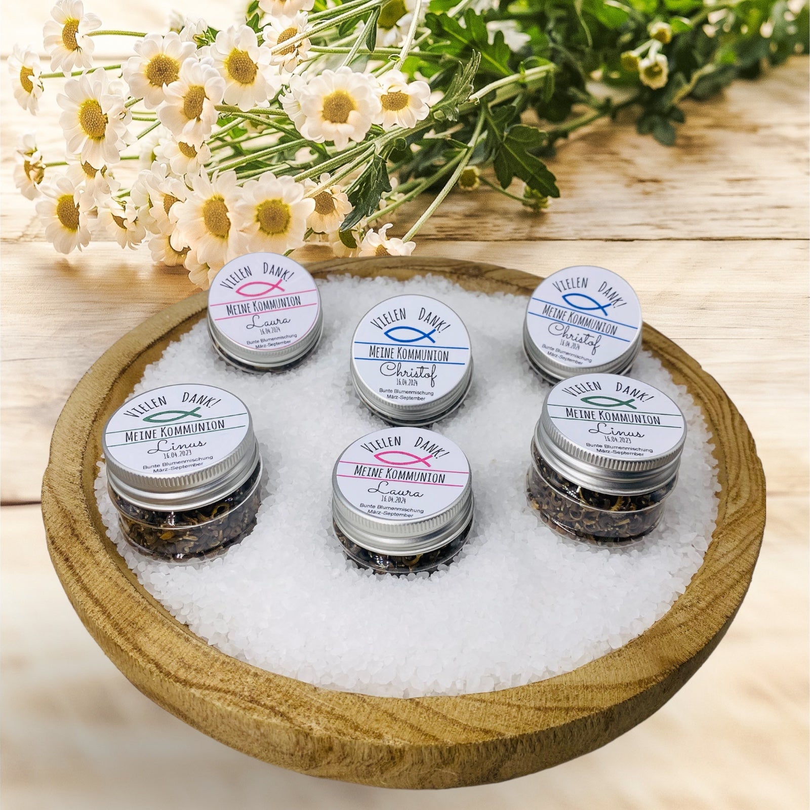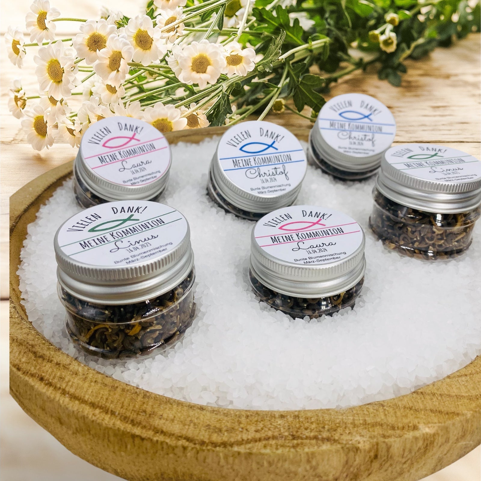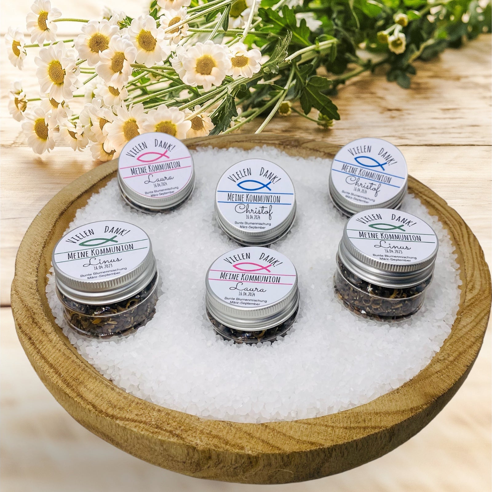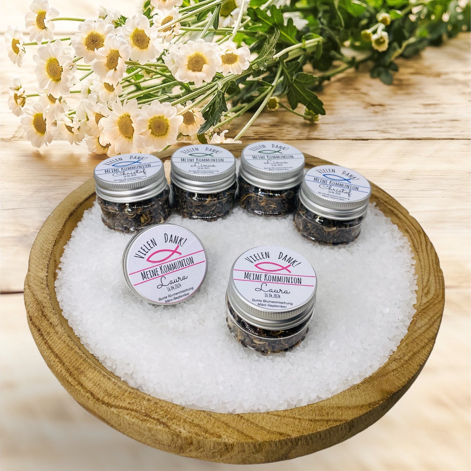 Lys din fejring op med en unik gæstegave, der fanger naturens skønhed. Vores eksklusive gavesæt inkluderer en krukke (43 × 38 mm) fyldt med nøje udvalgte blomsterfrø og er forfinet med en stilfuld dekoration: