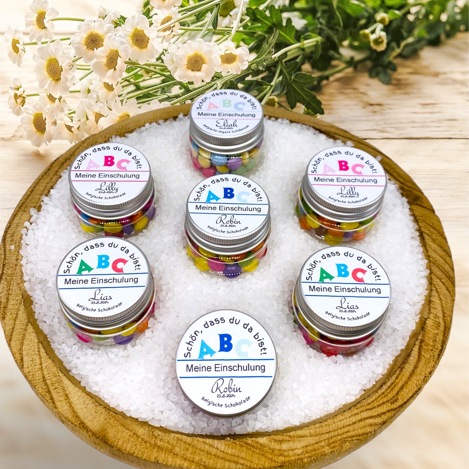 ABC – Personalisiertes Gastgeschenk zur Einschulung Tiegel