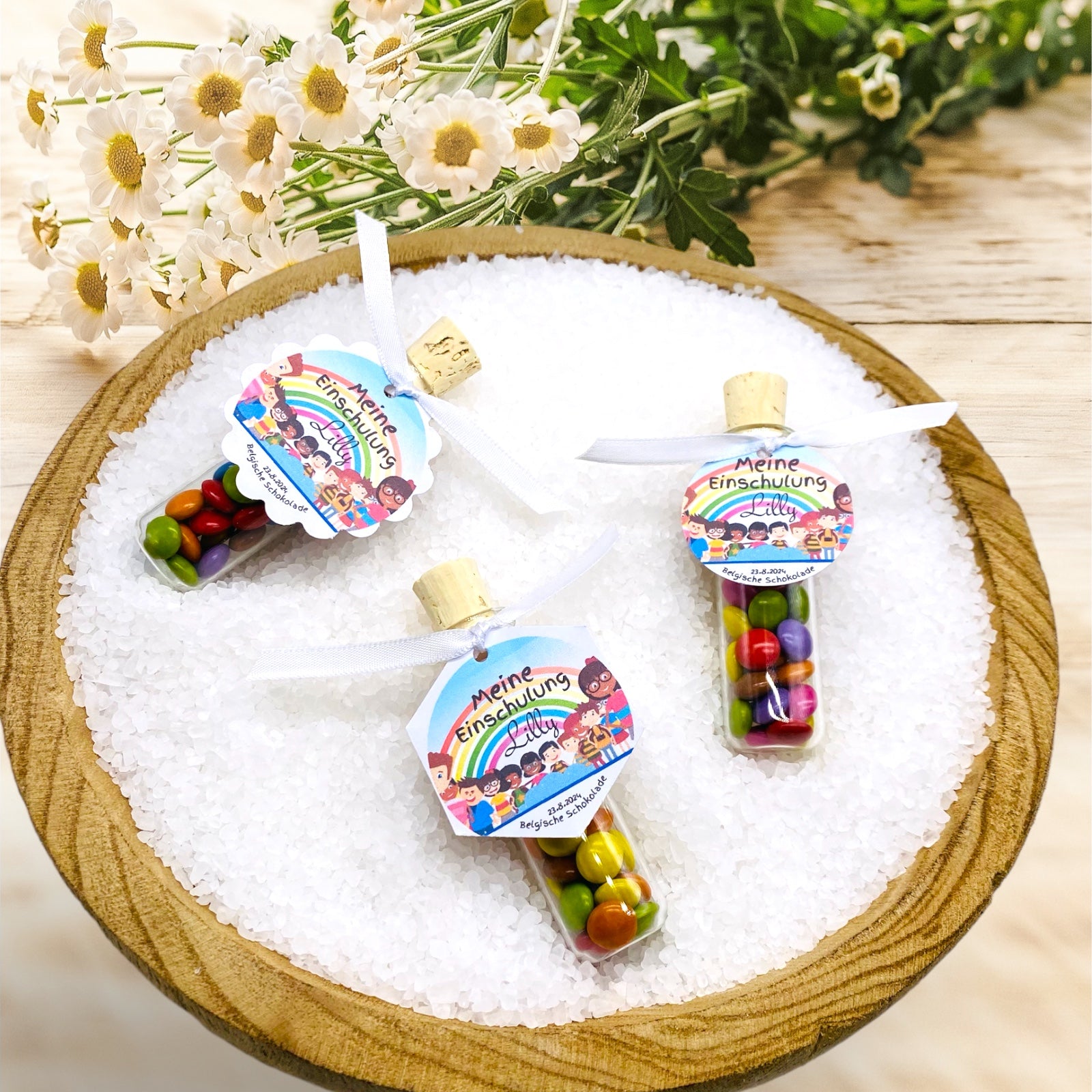 Bunter Schulstart – Personalisiertes Gastgeschenk zur Einschulung Schiffsgläschen