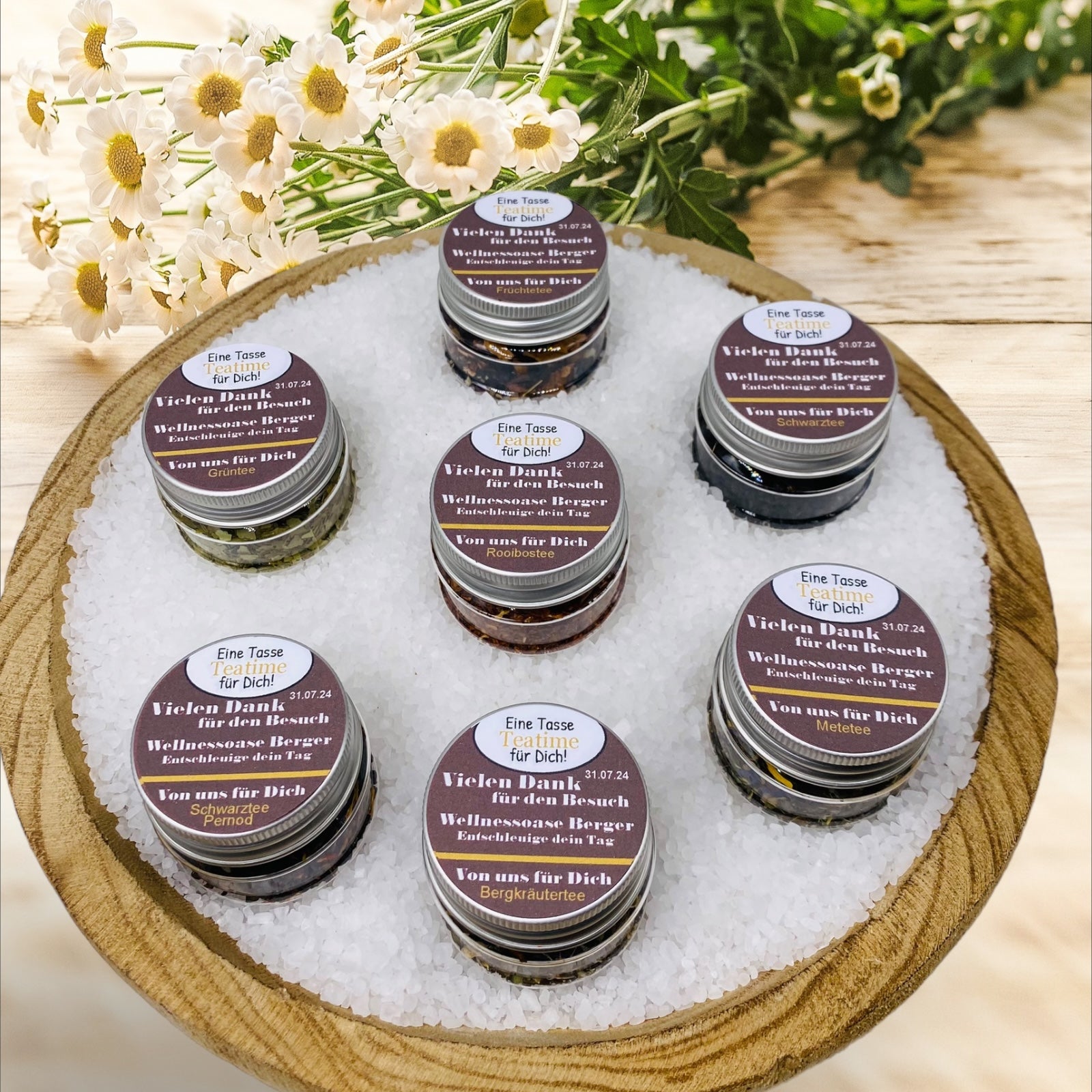 - Bedruckte Botschaft: Mit "Eine Tasse Tee Time für dich. Vielen Dank für deinen Besuch" als Beispieltext, z.B. "Wellnessoase Berger, entschleunigen deinen Tag" mit dem aktuellen Datum – eine persönliche Note für Ihr Werbegeschenk.