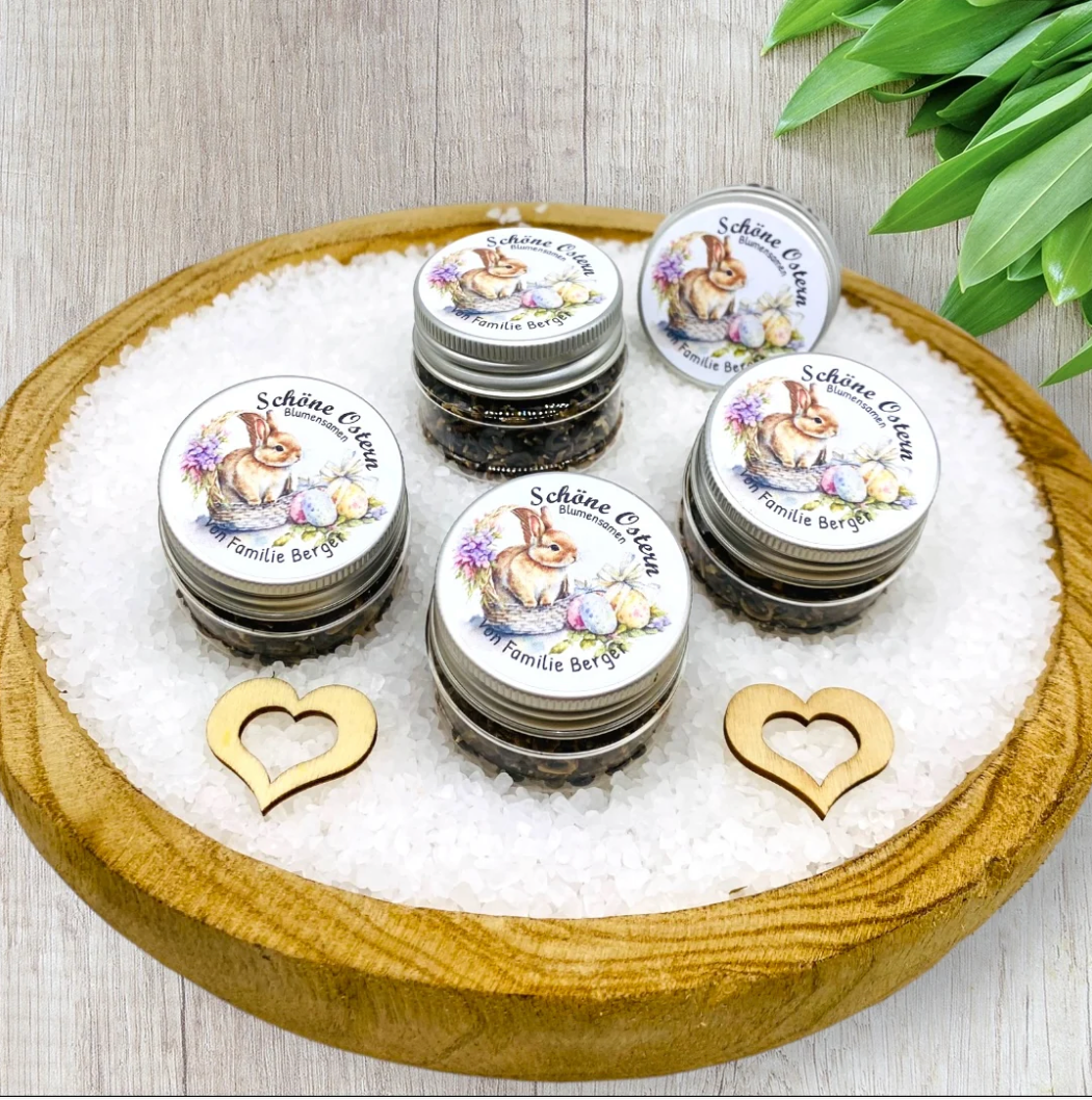 Wir bieten die Möglichkeit, die Döschen mit dem Namen des Empfängers oder eurem zu personalisieren – eine besondere Note, die das Geschenk zu Ostern unvergesslich macht.