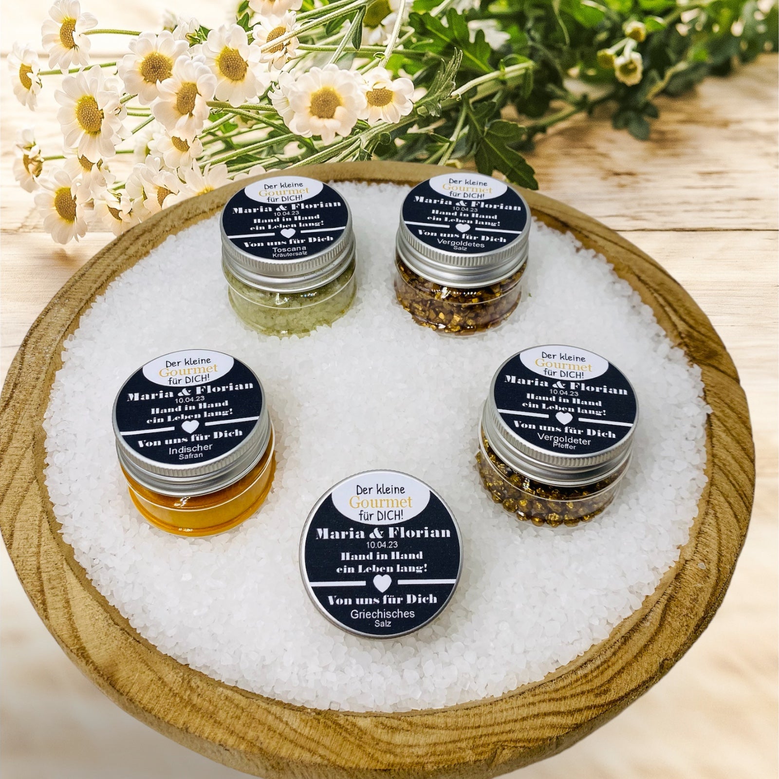 - Gefüllt mit einer Auswahl an hochwertigen Gourmetgewürzen für den perfekten Geschmack: goldenes Salz, goldener Pfeffer, indischer Safran, Toskana, Kräutersalz, griechisches Salz