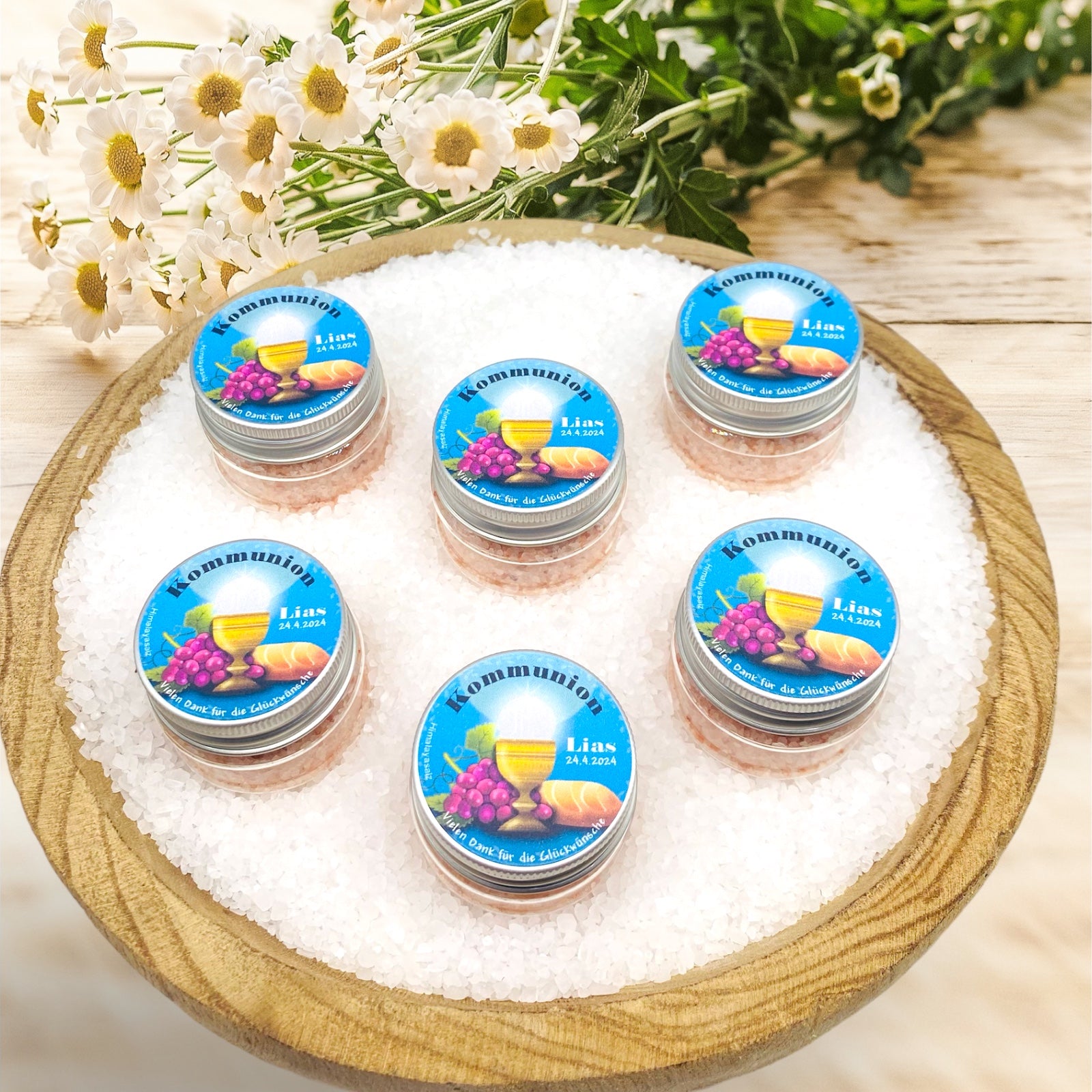 Entdecken Sie unsere einzigartigen Gastgeschenke für besondere religiöse Anlässe – Taufe, Kommunion, Konfirmation, Firmung und Jugendweihe. Unsere exquisiten Döschen (43 × 38 mm) enthalten feinstes Himalaya Salz und sind liebevoll gestaltet. Hier sind die Highlights: