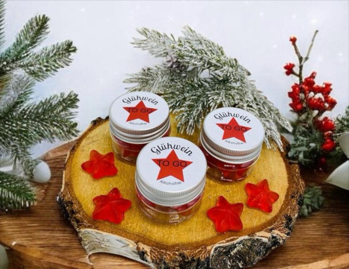 Gefüllt werden die kleinen Döschen mit Glühweinsternen (Fruchtgummi).