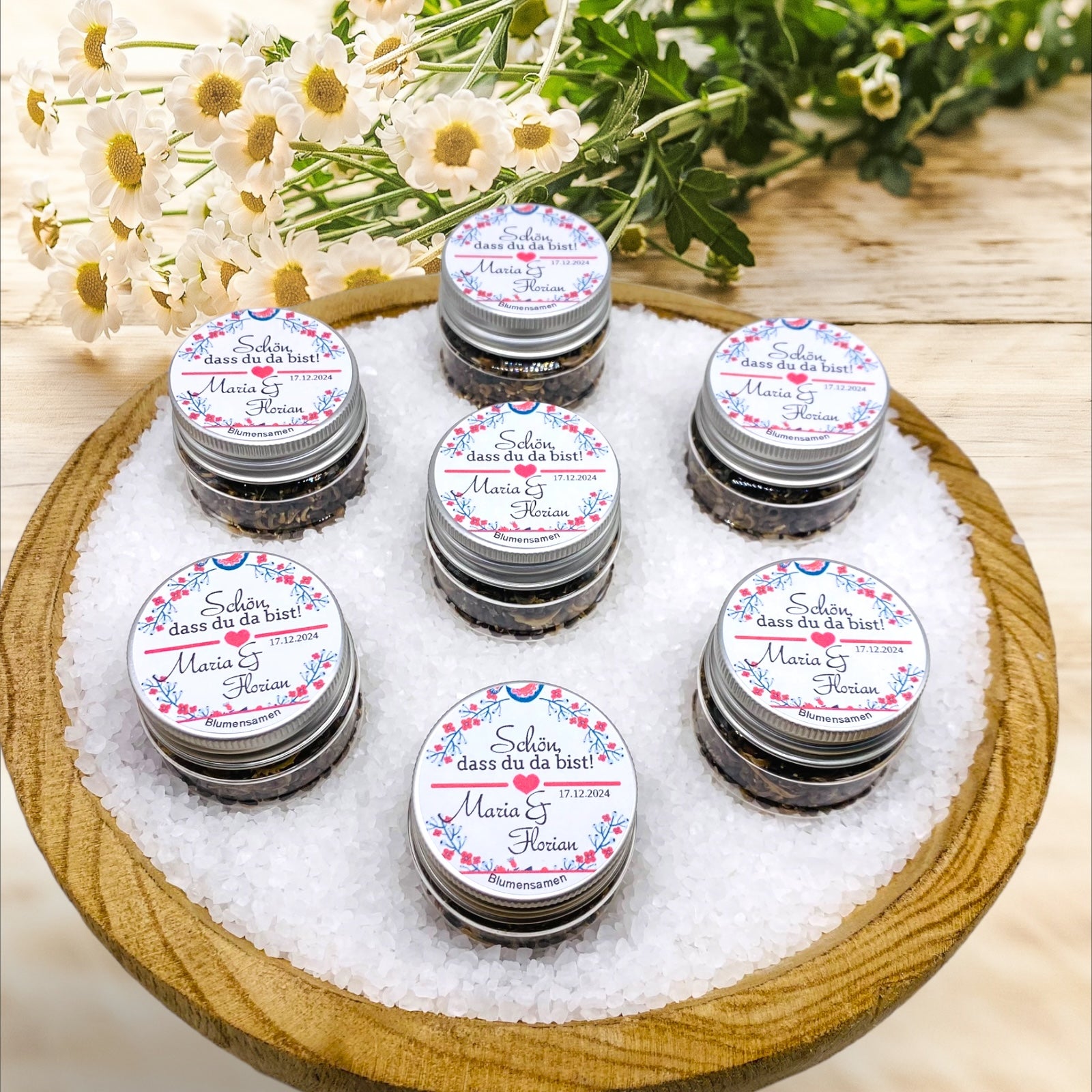 Überraschen Sie Ihre Gäste mit einem zauberhaften Gastgeschenk, das für bleibende Erinnerungen sorgt. Unser Tiegel-Geschenk ist gefüllt mit bunten Blumensamen, symbolisierend die Liebe, die wächst.
