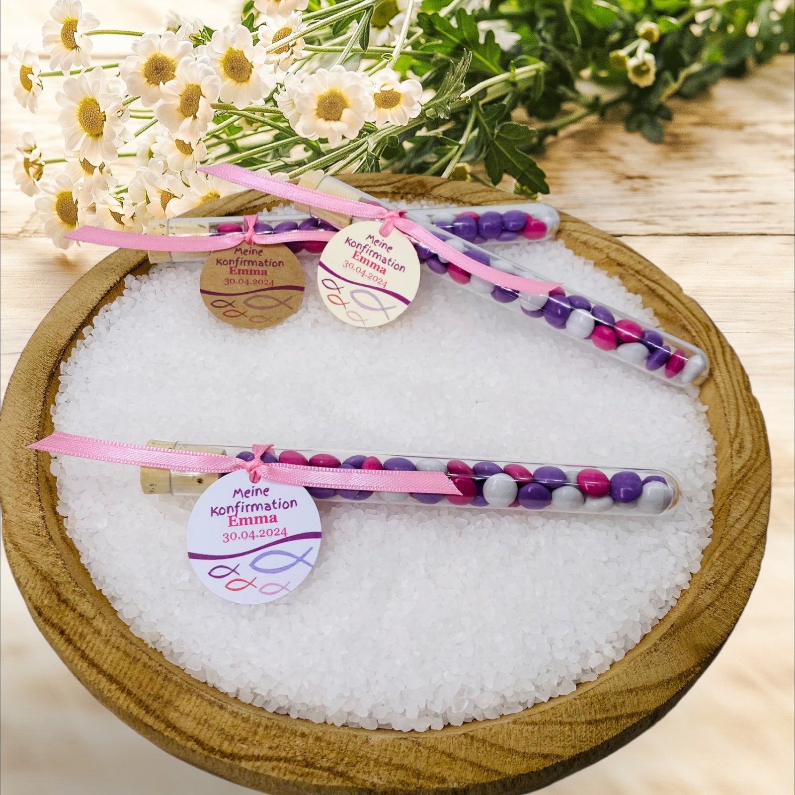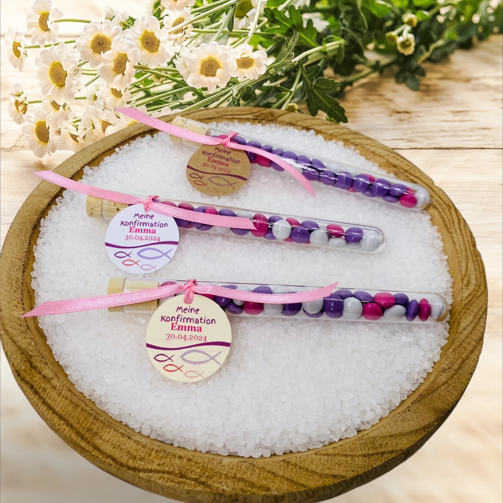 Immerse yourself in the world of celebrations with our exquisite guest gift, perfectly tailored to baptisms, confirmations and communions. We proudly present a top-class test tube, decorated with a length of 160 mm and a diameter of 16 mm. Here are the highlights of this unique gift: