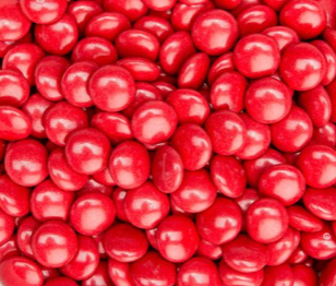 Chocolate lenses / mini dragees in red for candy bars, cake decorations, party favors and much more.