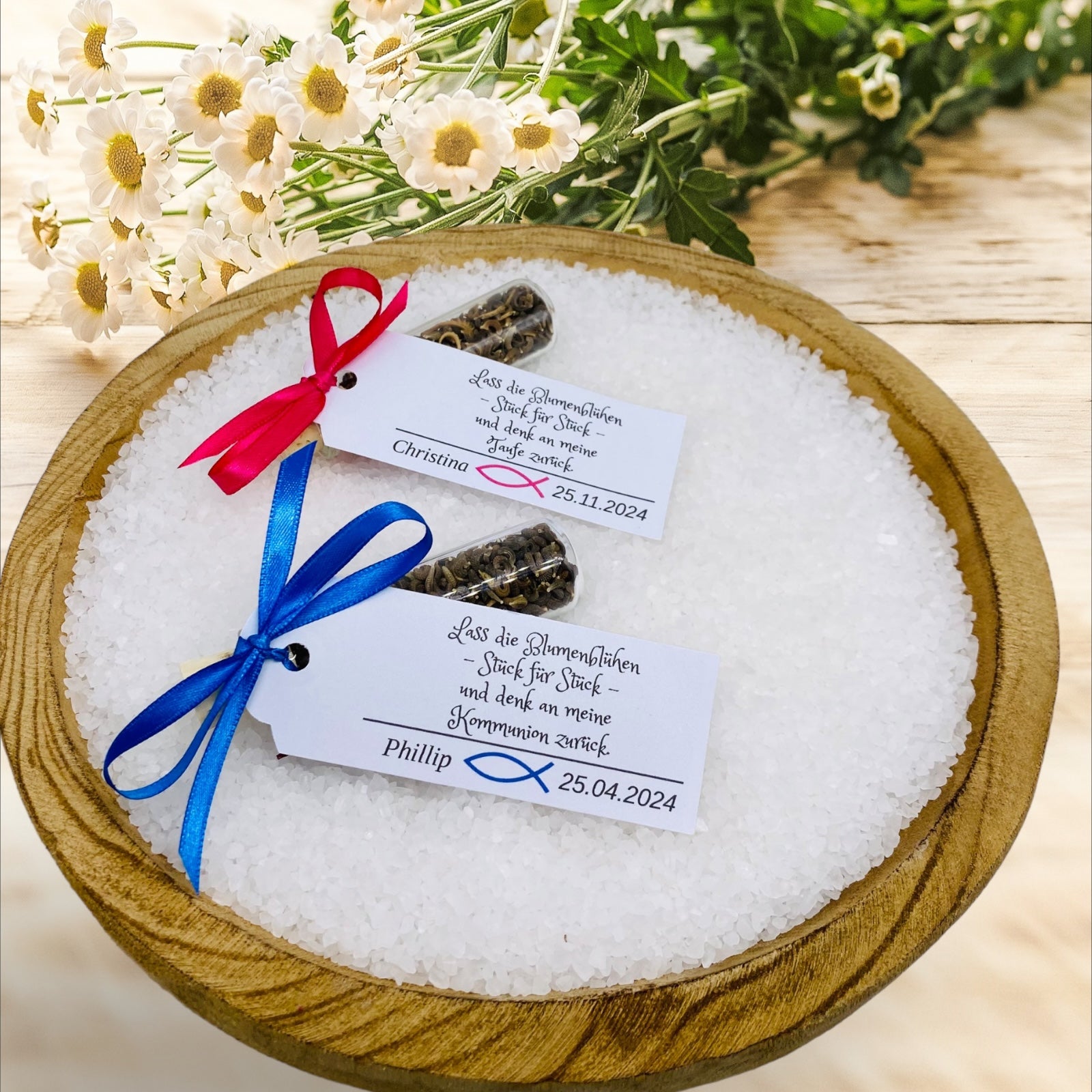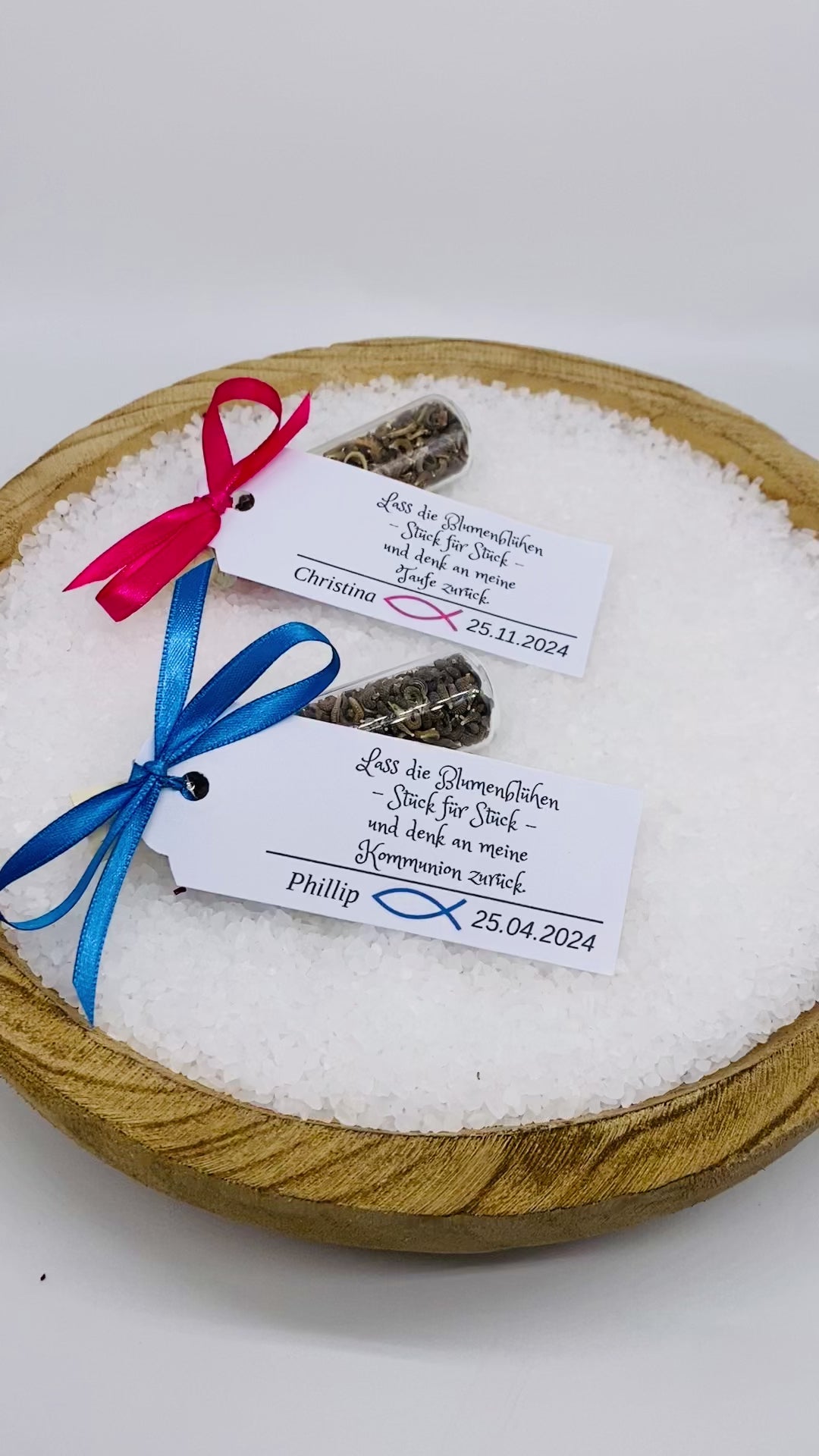 Personalized ship jars with flower seeds, lovingly decorated and individually designed for unforgettable moments! Baptism Communion