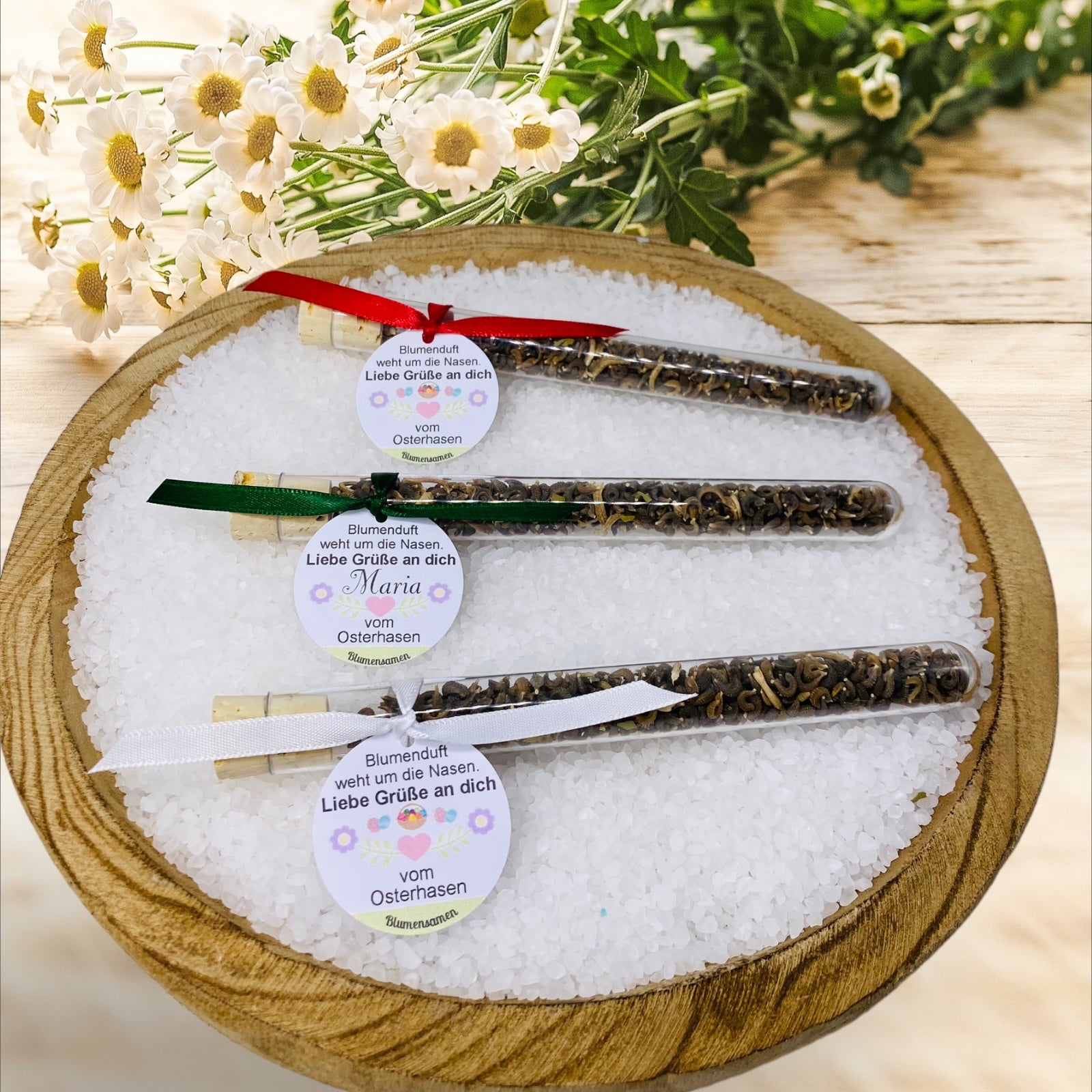 Unsere Reagenzgläser sind nicht nur ein Augenschmaus, sondern auch eine Hommage an die Schönheit der Natur. Als Spezialisten für Kleingeschenke und mit einem Hauch von Ostern in jedem Detail, sind diese Blumensamen-Gläser das ideale Präsent für deine Liebsten. Bringe Frische und Freude mit diesem einzigartigen Ostergeschenk in die Herzen deiner Gäste – eine Blumenmischung, die Liebe und Wachstum symbolisiert. Frohe Ostern!"