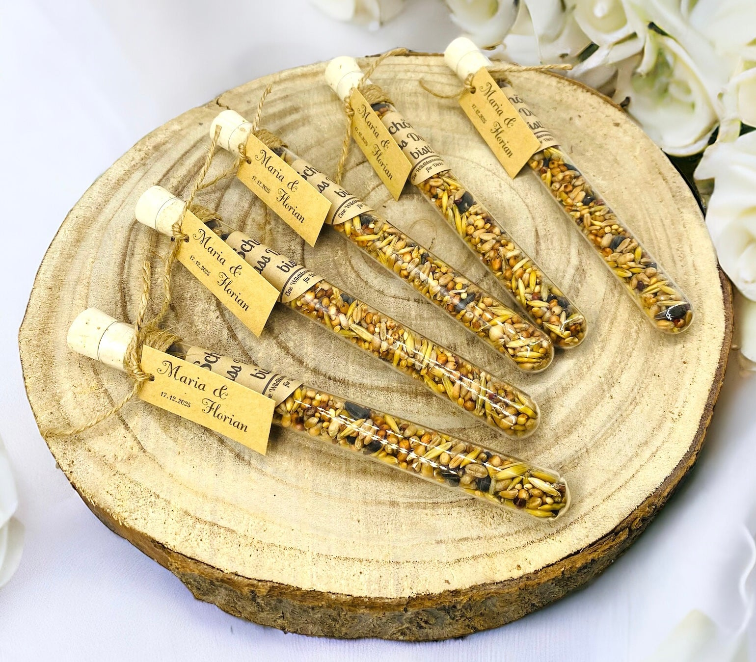 - Feiern Sie den schönsten Tag des Brautpaares mit unseren einzigartigen Gastgeschenken: Gastgeschenke gefüllt mit Wildblumensamen für eine farbenfrohe Blumenpracht.