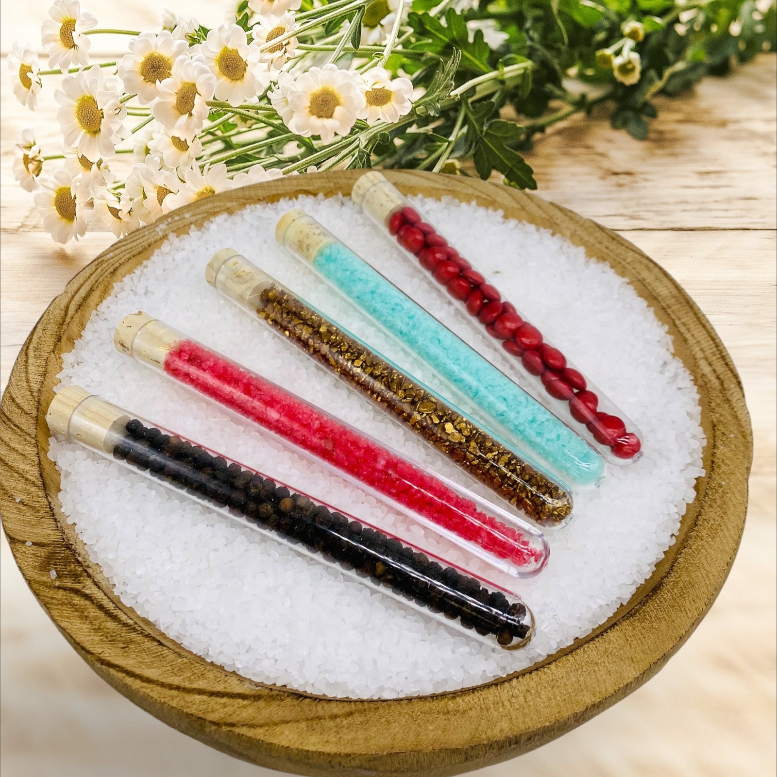 Treat yourself to a break with our high-quality bath salts. Each test tube contains a unique blend that invigorates your senses and guarantees relaxation.