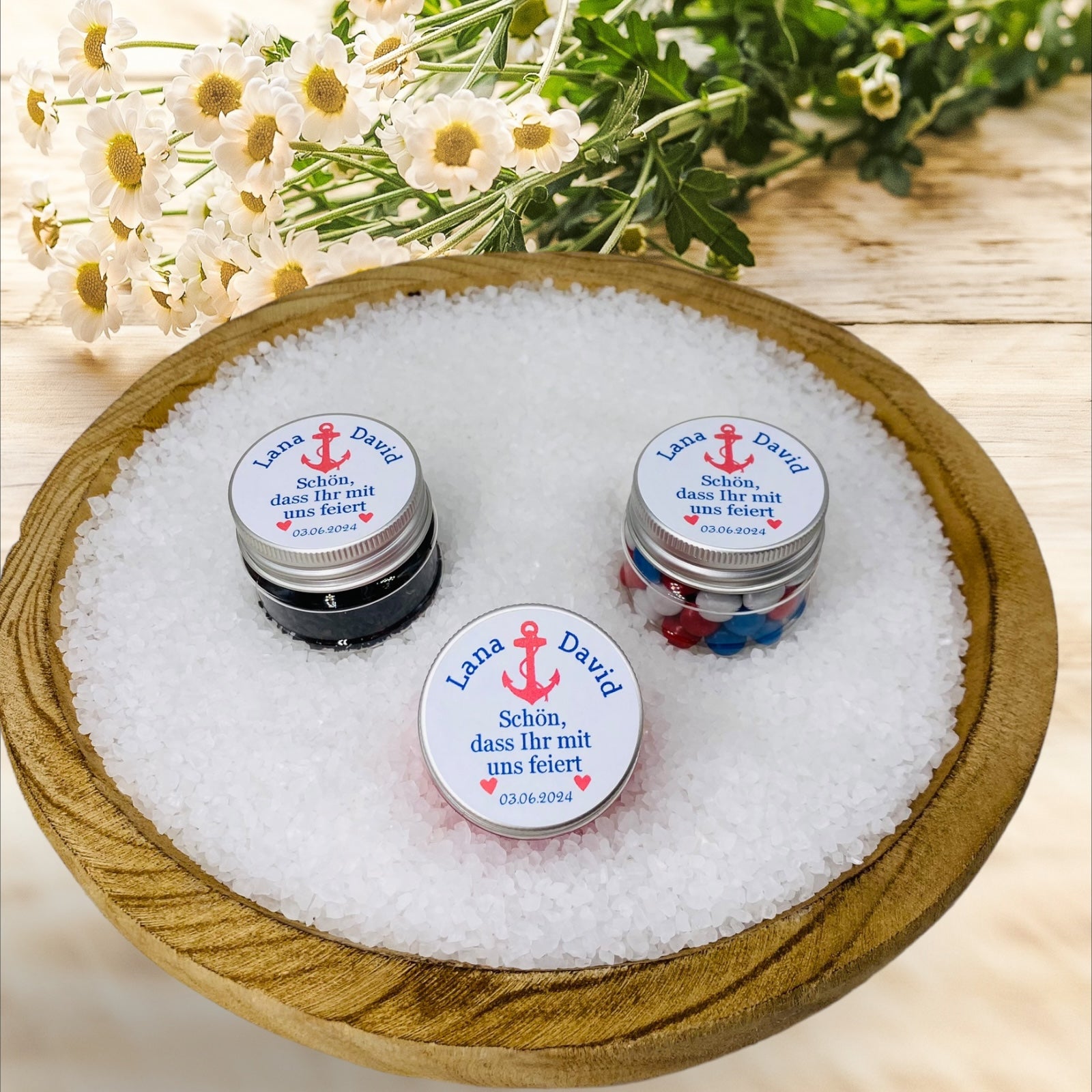 Jar with a personal anchor lid for unforgettable wedding moments! Perfect wedding favors 45 contents