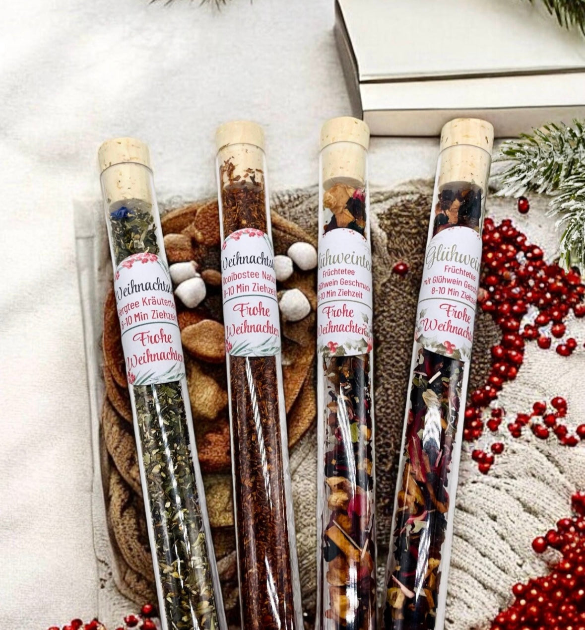 Verschenken Sie Wärme und Gemütlichkeit mit unserem Weihnachtstee im edlen Reagenzglas – das perfekte kleine Geschenk zu Weihnachten!
